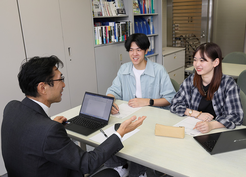 卒業年次前年のカリキュラムに,履修科目として配置されています。履歴書の書き方,面接試験の受け方など,就職活動のすべてをサポートします。