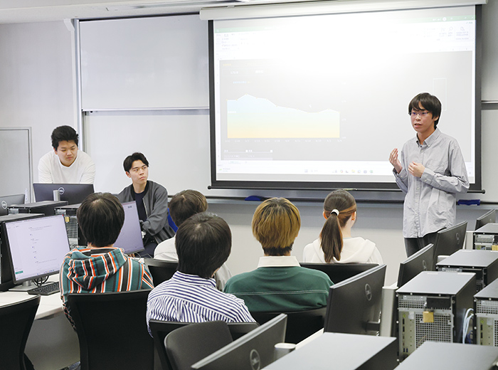 ビジネス分野におけるデータ分析を担う「データサイエンティスト」を育成します。データ分析の技術の基礎である統計解析や数理モデルをもとに,AI(人工知能)や機械学習,データ可視化技術などの高度な知識を応用して,市場動向の把握や経営陣の意思決定を支援するアプリケーションシステムが構築できるようになることを目指します。