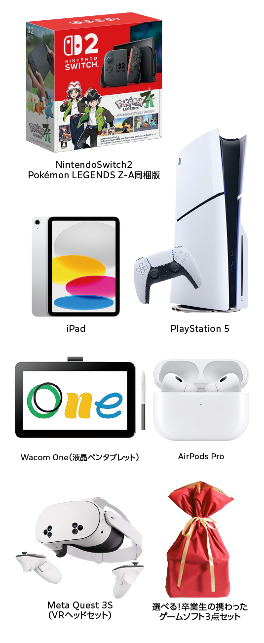 優勝者にはゲーム機やiPad,ペンタブレットなど,豪華賞品の中から希望の賞品を1つプレゼント!