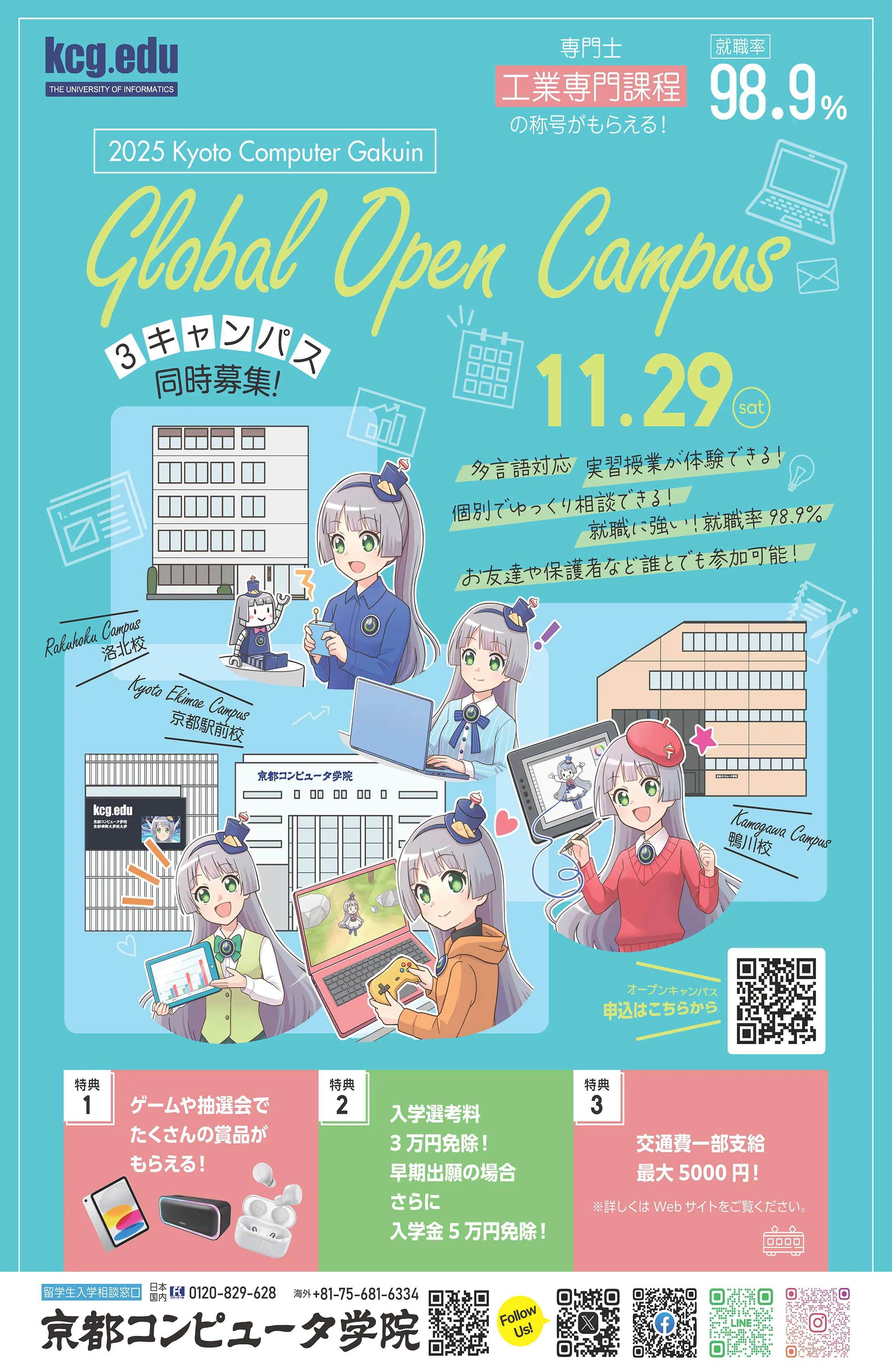 2026年4月に京都コンピュータ学院(KCG)への進学を志望している方を対象に,毎週月曜日に進学説明会を開催いたします。この説明会では,学科や学費,奨学金等について説明を行います。また,進学に必要な書類の準備についても個別にサポートします。