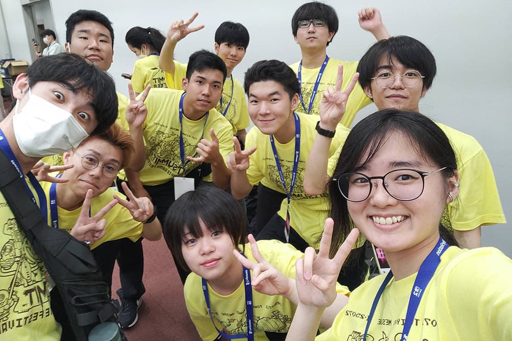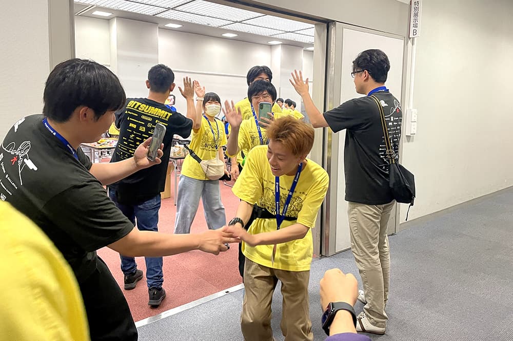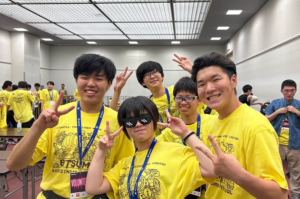 日本最大規模のインディーゲームの祭典「BitSummit the 13th」のイベント運営を担当した教員・学生たち(2025年7月,京都市勧業館「みやこめっせ」)
